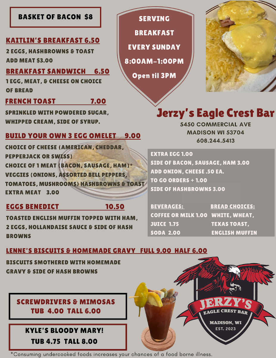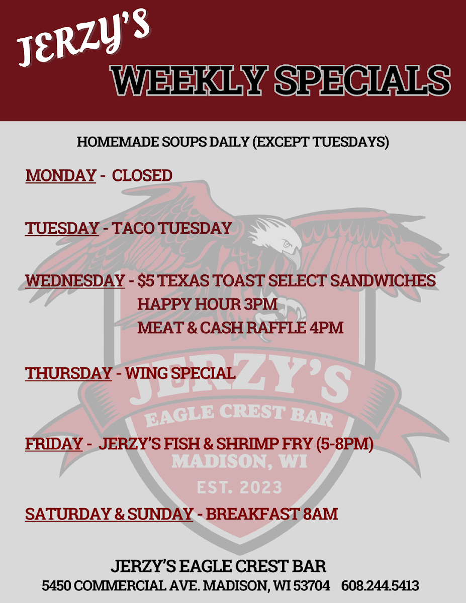 Welcome to Jerzy's Eagle Crest Bar, a gem located at 5450 Commercial Ave, Madison, WI. This lively venue has quickly made a name for itself with its welcoming atmosphere and delectable menu offerings.